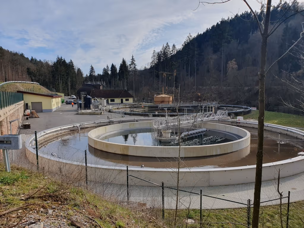 Die Maßnahme wurde erschwert unter Betrieb der vorhandenen Anlage umgesetzt. In einem letzten Arbeitsschritt wurden die Außenanlagen und der Einlauf in die Enz dem Stand der Technik angepasst und erneuert.