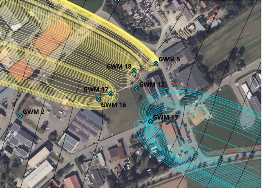 Die Konzeptentwicklung zur Ertüchtigung der Abstromsicherung erfolgt mittels Grundwassermodellierung. Mithilfe des Modells werden verschiedene Szenarien für eine kosteneffiziente und nachhaltige Maßnahme geprüft und optimiert. Die wesentlichen Modellparameter wurden anhand von Pumpversuchen ermittelt.