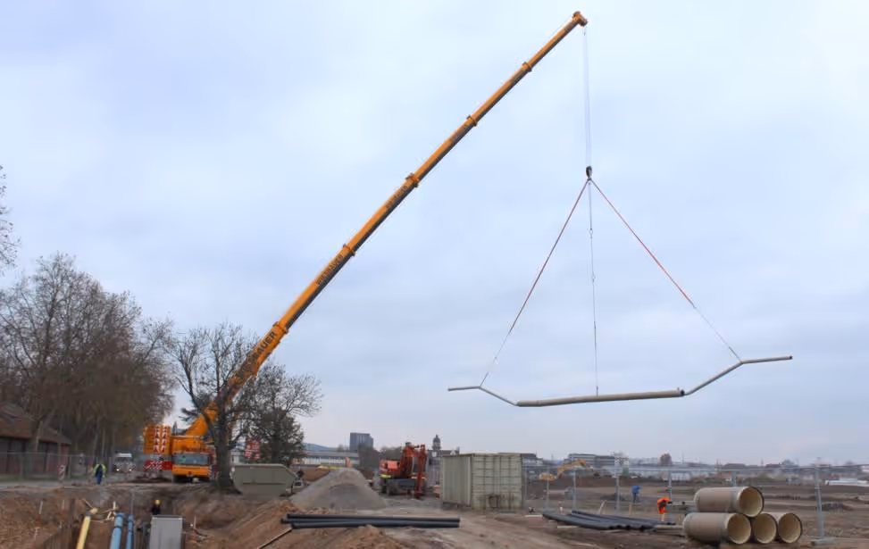 Bau der Medientrassen unterhalb der späteren Promenade ( B = 5 m). Gashochdruckleitung und Gashauptversorgungsleitung Ø 400mm bei 50bar Gasversorgungsleitung für das Neubaugebiet Ø 160mm Hauptwasserversorgungsleitung Ø 400mm Quartierwasserversorgungsleitung Ø 200mm Schmutzwasserkanal Ø 160mm - Ø 400mm Regenwasserkanal Ø400mm - Ø 1000mm Leerrohrtrassen Düker-Bauwerk Einbindebaugrube zur Anbindung des vorhandenen Neckar-Dükers Gesamtbaukosten von ca. 5 Millionen Euro