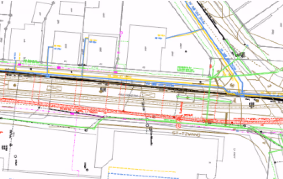185 m bemannter Rohrvortrieb DN 1400 mm mit offener Ortsbrust , davon 85 m in Kurvenfahrt Radius 360 2 Ortbetonschächte mit Anschluss an die bestehende Kanalisation Elektro- und maschinentechnische Ausrüstung Verzweigungsbauwerk ca. 1.000 m³ Aushub Verzweigungsbauwerk ca. 700 m² Spritzbetonverbau mit vorgebohrten Stahlträgern Verzweigungsbauwerk ca. 700 m² Schalung und 200 m³ Beton der Überwachungsklasse ÜK II