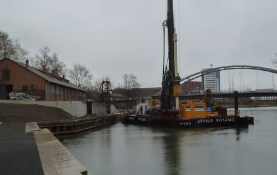 16 Bohrungen in den Fels mit Großbohrgerät wasserseitig vom Ponton, Bohrlänge 120 m, Bohrdurchmesser DN 1.200 mm als Austauschbohrung für das Einrütteln der Dalben 16 Dalben wasserseitig aus vom Ponton rammen, Gesamtlänge 195 m 4 Schwimmkörper als Schiffsanleger 6 Stege als Verbindung Land-Schwimmponton-Schiff 1.100 m³ Nassbaggerung zur Sohlenvertiefung